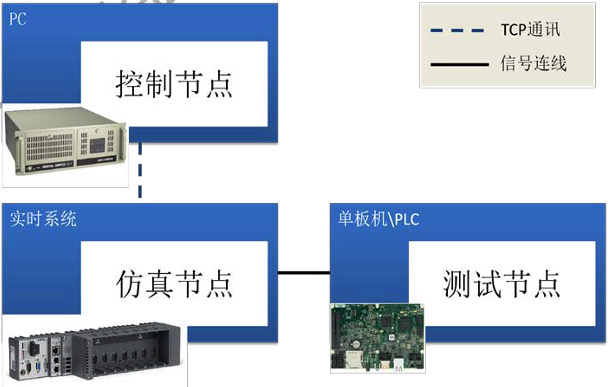用户需要借助国外一款仿真软件(AimSIM)对设备模型进行仿真。计算结果和模型输入借助NI 硬件平台进行信号的输出和接收。 系统结构图如下所示: